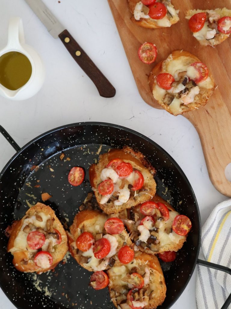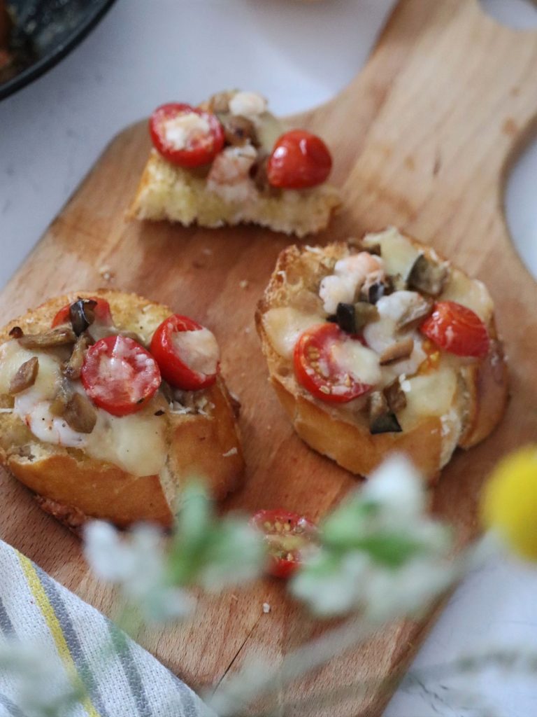 U mojoj obitelji Bruskete su ovo ljeto bile pravi hit! Hrskave, sočne, pune mediteranskih okusa, jaaako ukusne! Kod ukućana i gostiju izazvale su oduševljenje i na stolu bi uvijek prve nestale. Hrskavi kruh zapečen s mozzarelom, kozicama i mini rajčicama donosi prefinu kombinaciju okusa i tekstura. Uz kap maslinovog ulja dobijete pravi užitak…Vjerujem da će ove Bruskete, koje su se kod nas udomaćile, postati nezaobilazni dio Vaših obiteljskih i prijateljskih druženja. Radujem se Vašim dojmovima!