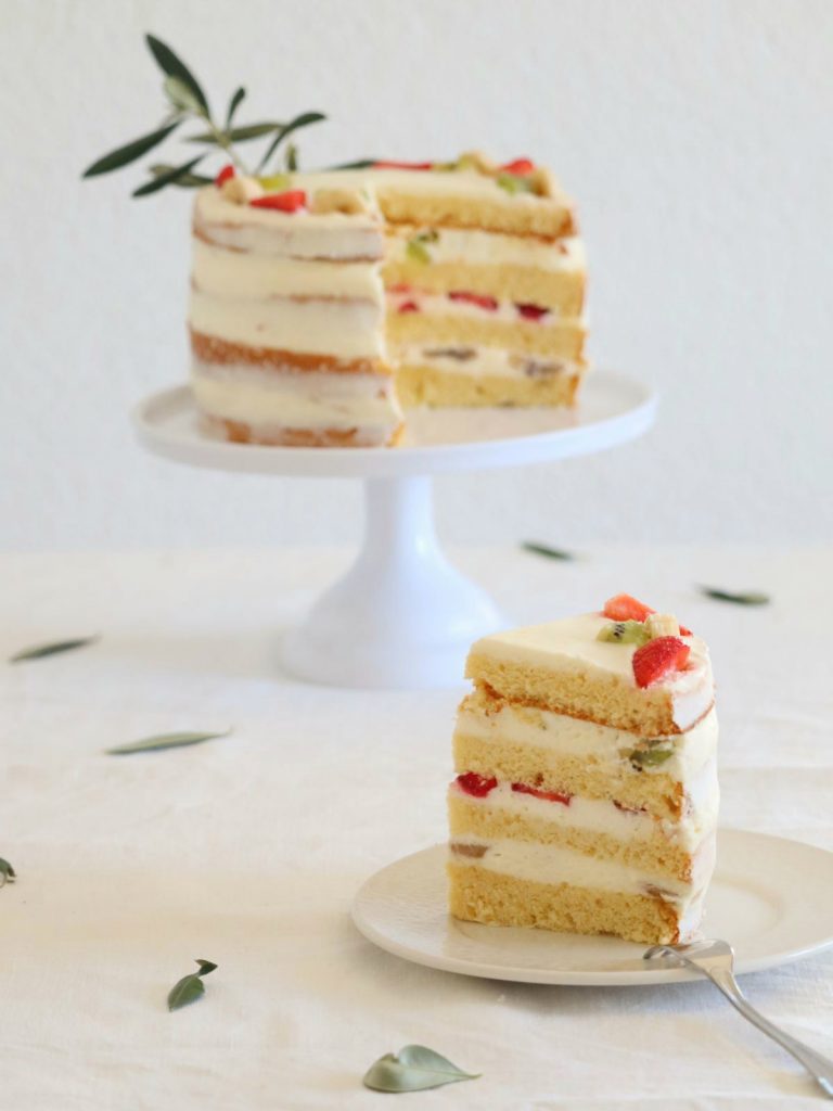 S proljećem i toplijim danima više se okrećemo laganijim i osvježavajućim slasticama. Upravo jedna takva je i ova Voćna torta. Slojevi genoise (đenovskog) biskvita s kremom od sira i šlaga te svježim voćem, čine ovu tortu raskošnom, a opet laganom i osvježavajućom.